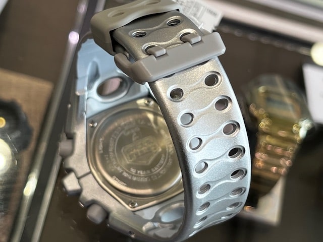 エッジの効いたパーツを組み合わせた有機的な外装フォルム、2つの穴が大きな特徴となっているショックリリース針など常識を覆す斬新な発想で、強さを求めて挑戦を続けるG-SHOCKのアイデンティティを形にしています。