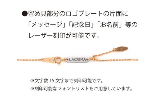 留め具部分のロゴプレートの片側には、記念日やメッセージの刻印も可能です。