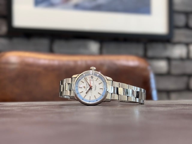 鮮やかなオレンジの秒針と拡大されたデイト表示を備え、ヴィンテージらしいプロポーションと現代的なデザインのバランスを巧みに取っています。