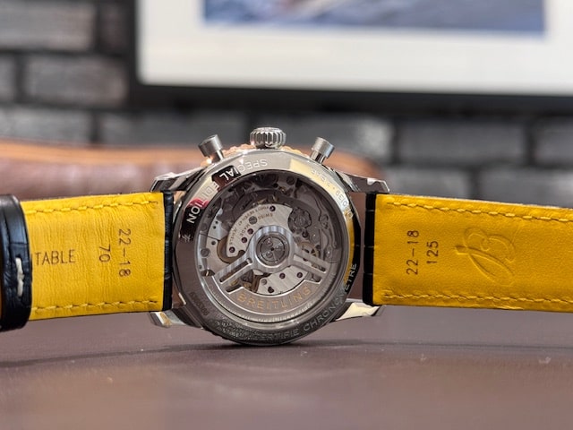 美しく仕上げられた自社キャリバーの複雑な動きを楽しむことができます。