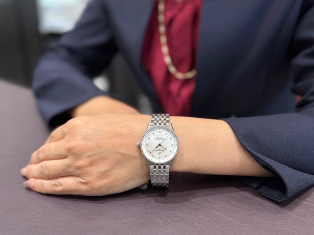 今まで、習慣的に腕時計を着けていなかった女性の方にも、アクセサリーのような感覚で、時計を楽しんでもらえるようなモデルですね。