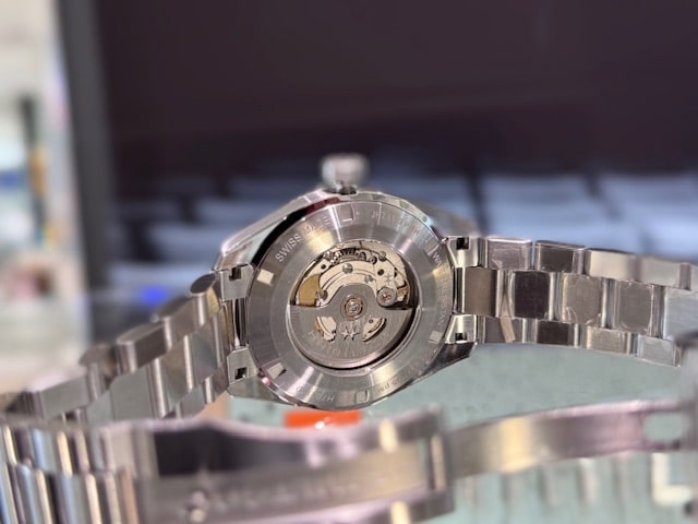 裏蓋はシースルーバックになっており、自動巻機構の動きが楽しめます。