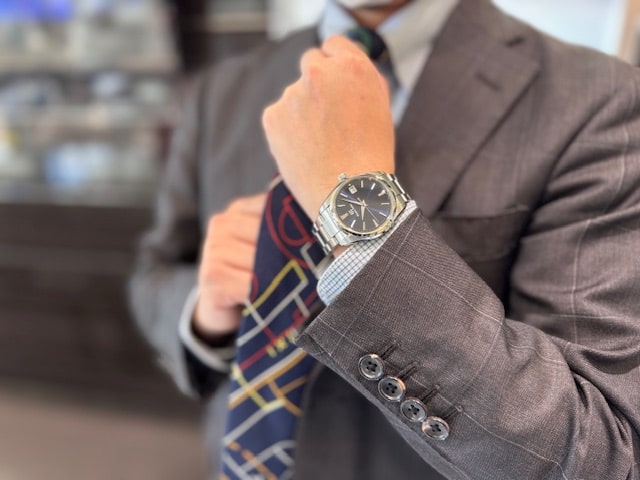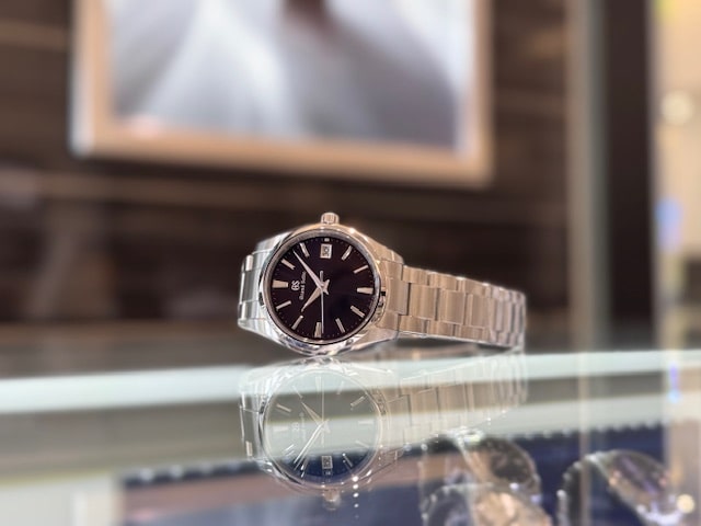 スイス機械式時計をお持ちの方にも高評価されているモデルが、日本を代表するグランドセイコーのクォーツモデルです。今回ご紹介するのが、人気のブルー文字盤。当店でも売れ筋の文字盤カラーになります。深みのあるブルーなので、遠目から見るとブラックにも見えます。