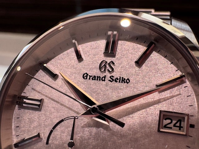 グランドセイコーの王道デザインに施されたケースの美しい仕上げに、文字盤を滑るような動きの秒針がゆるやかに流れる時間を感じさせてくれます。