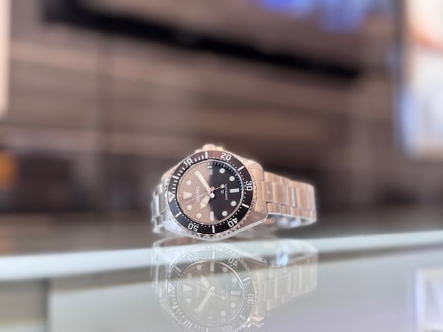 ダイバー時計らしい力ず良いデザインと、太くはっきりとした針で視認性が高く、日常使いからビジネスシーンまで幅広くご使用できることが強みです。