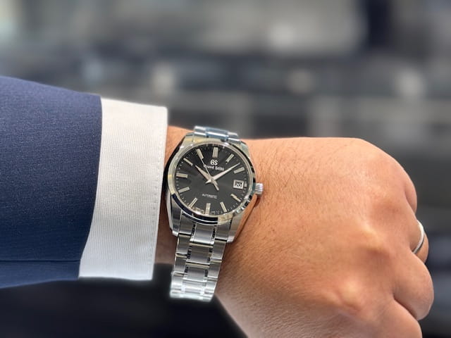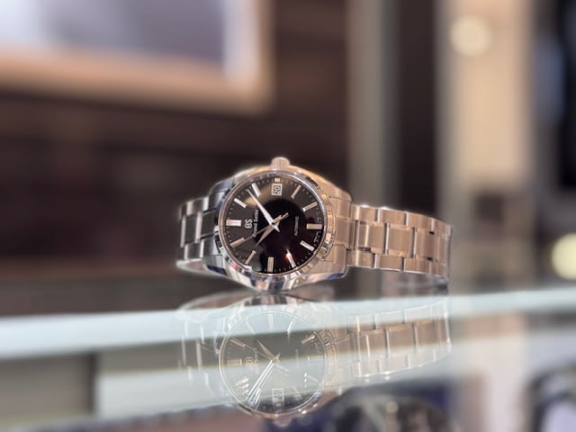 言わずと知れた日本を代表するグランドセイコーのクォーツモデルです。文字盤カラーはブラック文字盤。放射を施したブラックダイヤルが、引き締まった表情をより一層引き立てます。
