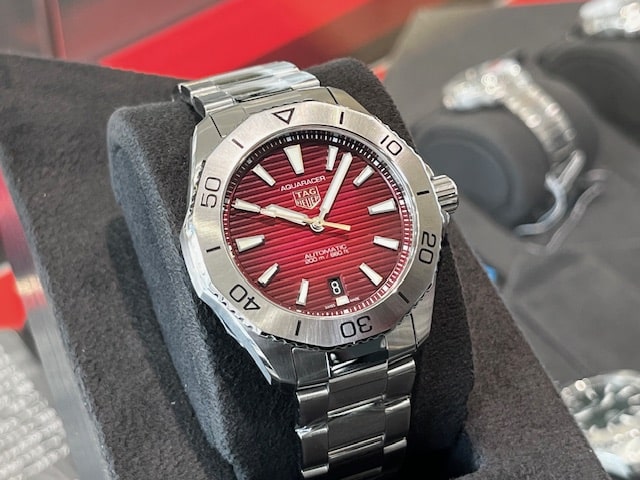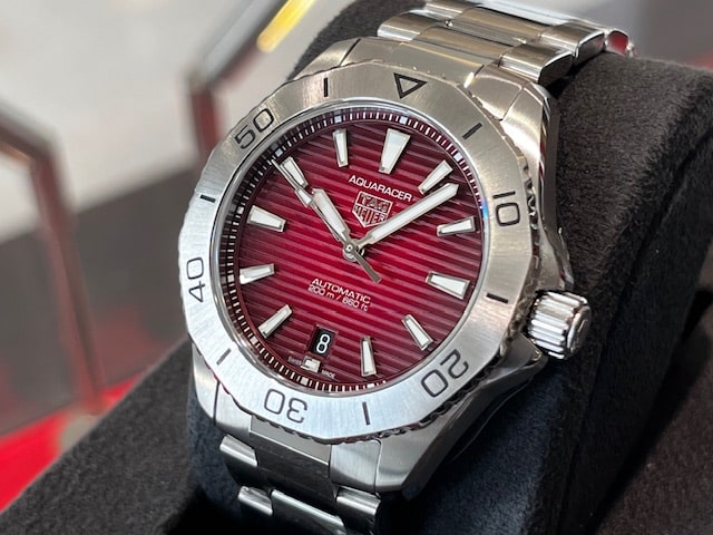 鮮やかな秋の彩をまとったルビーレッドのダイヤルと、40mmサイズの機能的なステンレススティール製ケース&ブレスレットを備えた、スタイリッシュなモデルです。