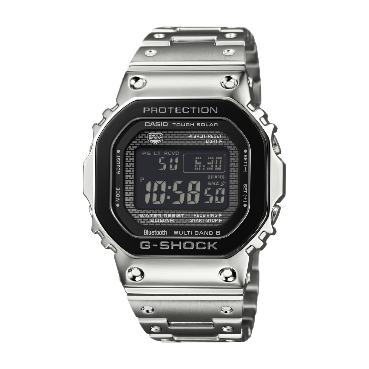 ステンレススチール製のベゼルは鍛造・切削・研磨といった加工を経て立体的に成形。フルメタルによる耐衝撃構造を実現するため、ベゼルとケースの間にはファインレジン性の緩衝材を実装。また、メタル製のバンドピースにはディンプル加工を施し初代モデルの樹脂バンドデザインを継承しています。 初代G-SHOCKを生み出した「山形カシオ」で製造し、気密性に優れたスクリューバックケースも採用しています。
