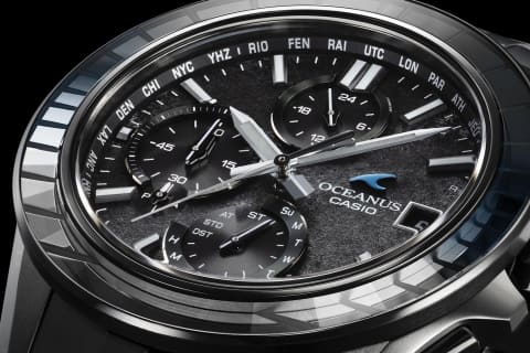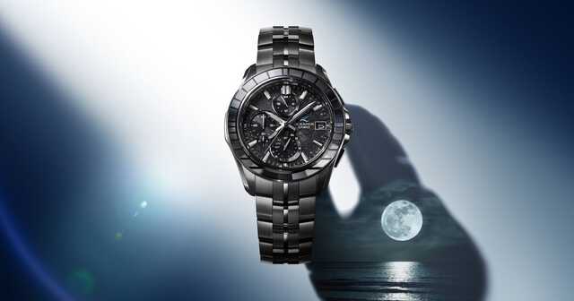 カシオ・オシアナス、ブラックの江戸切子ベゼルで月と海を表現。