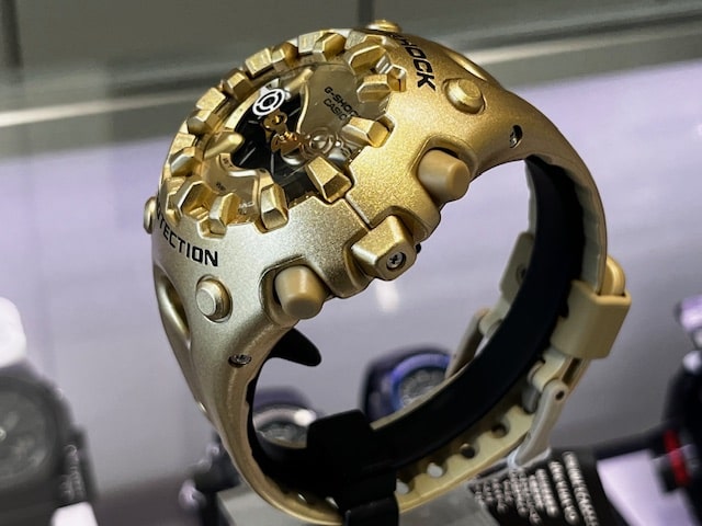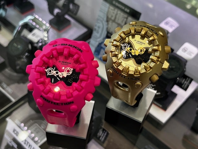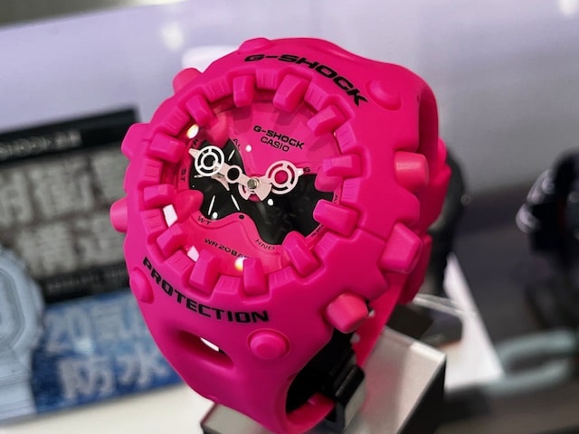 エッジの効いたパーツを組み合わせたフォルム、大型全面液晶、ショックリリース針など斬新なデザインはそのままに、ピンク、そしてインパクト抜群のゴールドがラインアップされています。
