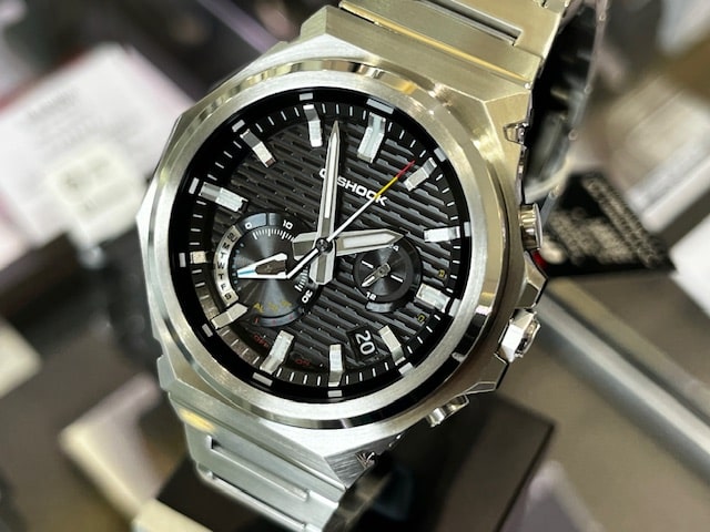 ロゴを排したベゼルは光の角度で表情を変え豊かな質感を演出。ステンレススチール製のバンドにはヘアライン仕上げとミラー仕上げを施し、三つ折れ式中留は端正なデザインとホールドが魅力です。 G-SHOCK初号機“DW-5000C”から継承したベゼルデザインやレンガパターンが、スポーティさも加えています。