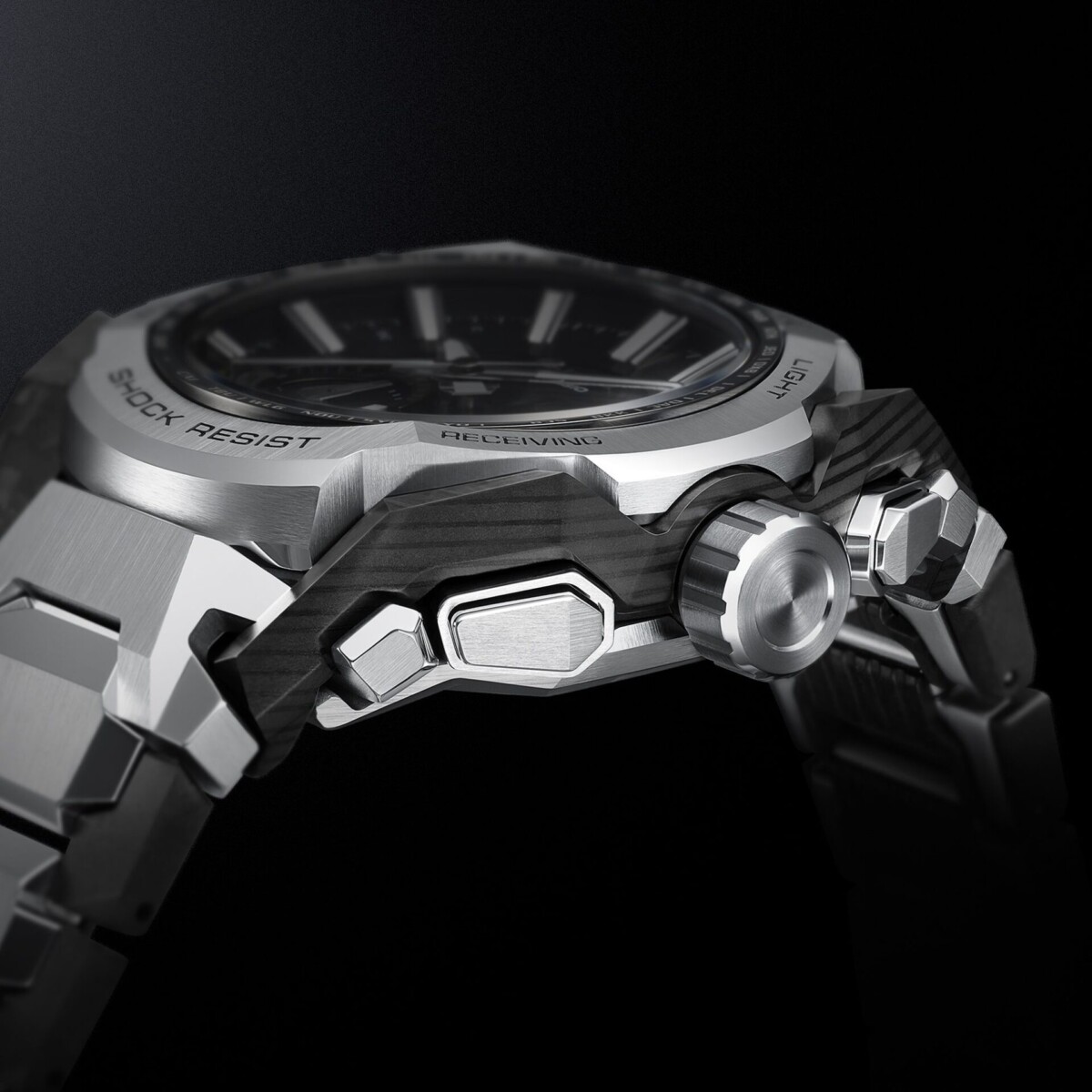 バンドは、ステンレススチールとカーボンファイバー強化樹脂を組み合わせたレイヤーコンポジットバンド。裏蓋は、粉末状の金属を射出成形するMIM(メタルインジェクションモールディング)成形により立体的に成形され、ケースを保護しています。 機能面ではBluetooth®通信機能により専用アプリ「CASIO WATCHES」と接続し時刻情報を取得。マルチバンド6やタフソーラー、高輝度なLEDライトも搭載し実用的な機能を備えています。