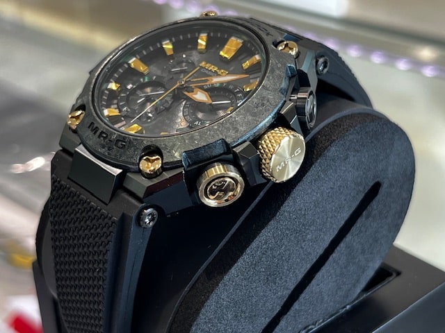 機能面では、電波受信機能とBluetooth ® 通信機能によるスマートフォンとの連携に対応し、実用性も兼ね備えています。 回路押さえ板に金めっきを施し、電気抵抗値を低減したMR-G 専用モジュールを搭載しています。さらに、ザラツ研磨、二重の硬化処理、反射防止コーティングサファイアガラスを採用するなど、細部に至るまで強さと品質にこだわりました。日本の美意識と技術力で、強さ、美しさ、精度を徹底追求したMR-Gです。