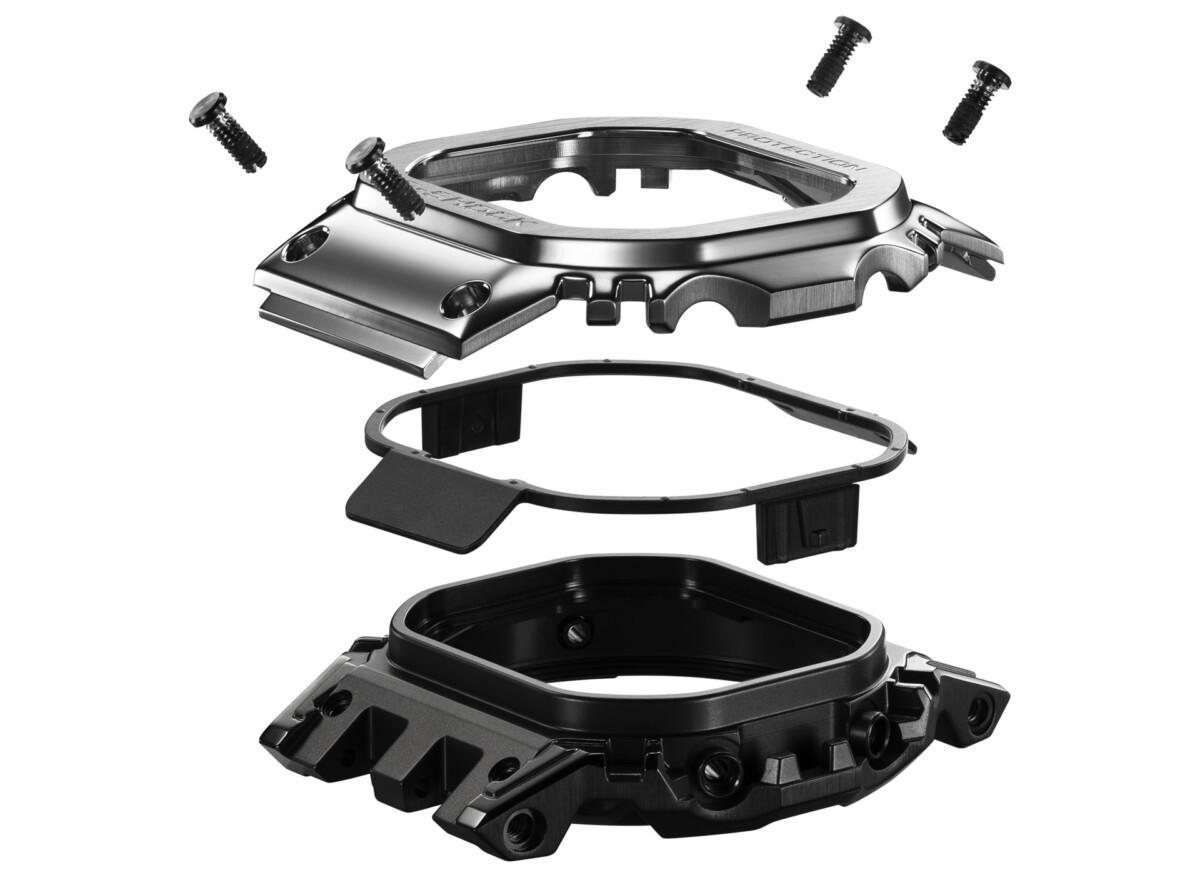 初代G-SHOCKのデザインを受け継ぎ、人とAIが共創したジェネレーティブデザインを構造に採用したフルメタルモデルです。ベゼルとセンターケースを上下で連結する新構造で耐衝撃性を確保。高精細で視認性の高いMIP(メモリインピクセル)液晶を新開発し搭載しています。