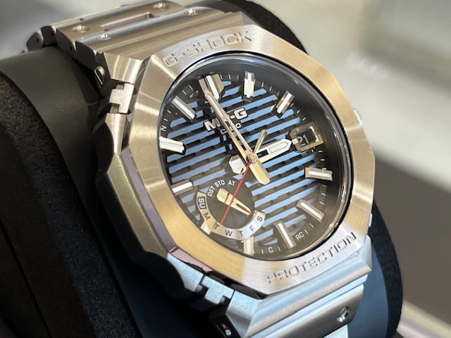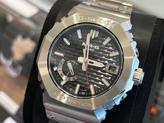 G-SHOCKの最上級ラインである「MR-G」シリーズ。 G-SHOCKの薄型モデル2100シリーズにこだわりの金属素材の採用と丹念な仕上げを施してつくりあげたMR-Gです。