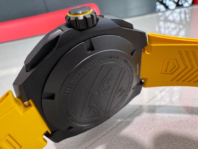 超高速のモーターレーシングで求められる要件を満たすよう設計された44mmのブラックDLCチタン製ケースとフォージドカーボン製ベゼルが、耐久性と軽量感の両立を見事に実現。ベゼルに刻まれたセナのロゴが、アイコニックなパートナーシップを強調し、限界を超えるインスピレーションをもたらします。