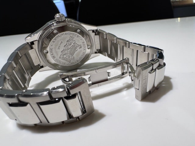 「マーベライト クロノメーター」には、ムーブメントを覆う複数の部品(インナーケースやベースダイアルなど)素材に透磁率の高いミューメタルを採用し、それらの部品で磁気シールドとなる「耐磁インナーケース」を形成し、80,000A/mの耐磁性を実現させています。