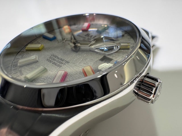 ・メテオライト(隕石)+ レインボーカラーのインデックス文字盤 日付け表示