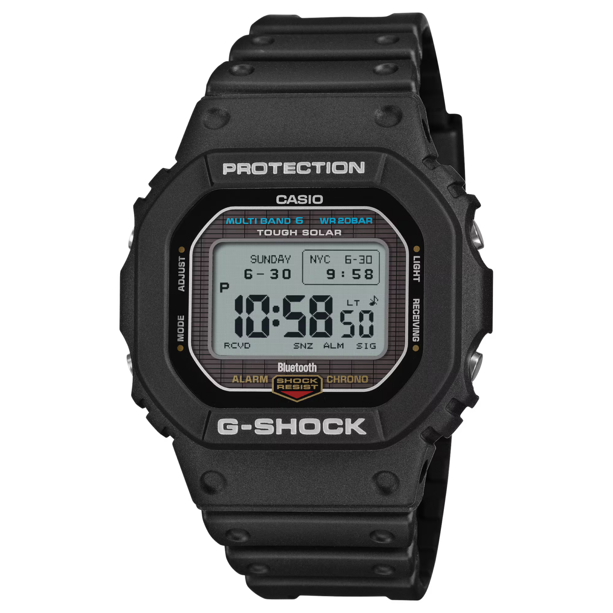 機能面ではBluetooth®通信機能により専用アプリと接続し時刻情報を取得。マルチバンド6やタフソーラー等、実用的な機能を備えています。