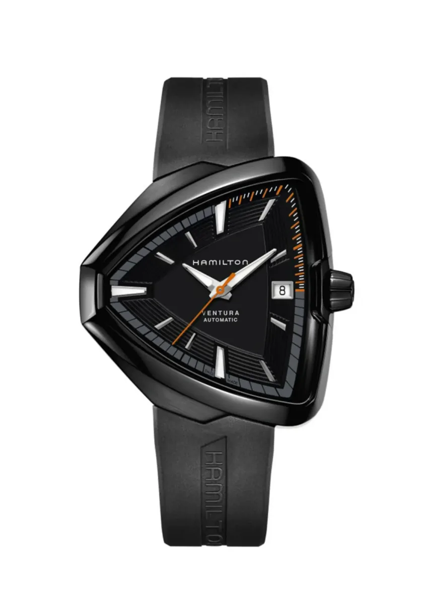 1957年に発売された「ベンチュラ」は、世界初の電池式腕時計として時計史に革命を起こしました。革新的で大胆なデザインを備え、ハミルトンのアイコンウォッチとして不動の人気を誇ります。20世紀半ばのアメリカのモダンデザインを色濃く反映したスタイリッシュなフレックスベルトを採用した「ベンチュラ」は、おしゃれなふたりにぴったりです。
