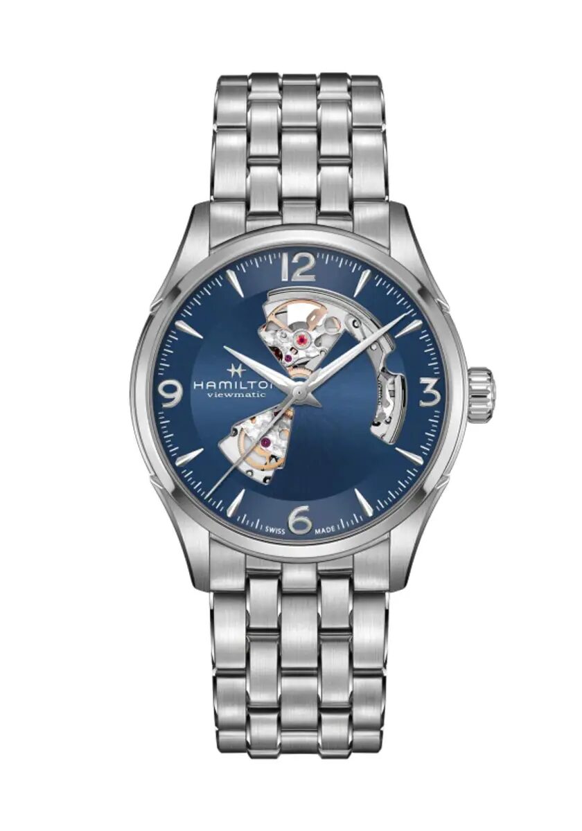 パワフルな内部機構を堪能できる「ジャズマスター オープンハート」。42mmのダイヤルを備え、その精巧さが周りの視線を釘付けにします。魅力的なミッドナイトブルーのダイヤルが輝き、アイキャッチなタイムピース。都会的な設計が放つ現代性と、無限の宇宙を表現したカラーが融合したモデルです。ハミルトンの進化し続けるクラフツマンシップとディテールへのこだわりを体現したダイヤルには、自動巻きムーブメントH-10を採用。ニヴァクロン™製ヒゲゼンマイにより、標準持続時間80時間を誇る「ジャズマスター オープン ハート」には、エレガントなブルーレザーストラップが合わせられています。 ハミルトンのドレスウォッチコレクションをご覧ください。