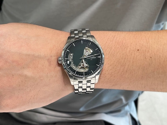 オープンダイアルにグラデーションカラーがとても美しいモデルです。機械式時計の魅力が存分に楽しめると思いますよ。