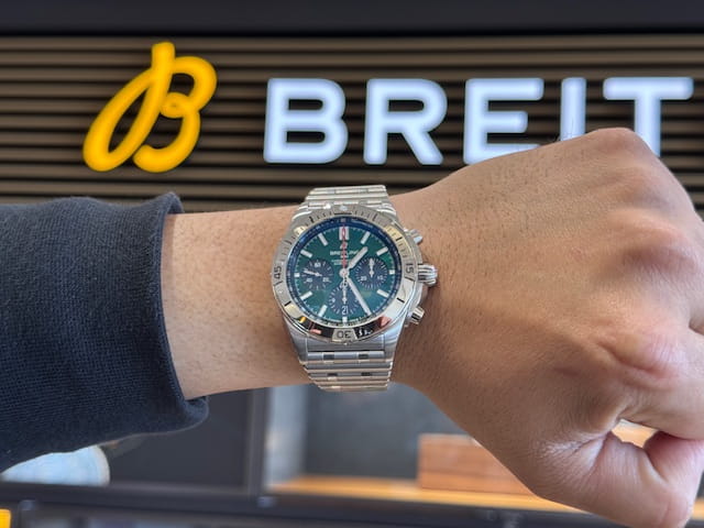 ブライトリングの万能モデルとして人気のあるクロノマットのグリーン文字盤、個性的であり、とてもカッコいいモデルですよね。